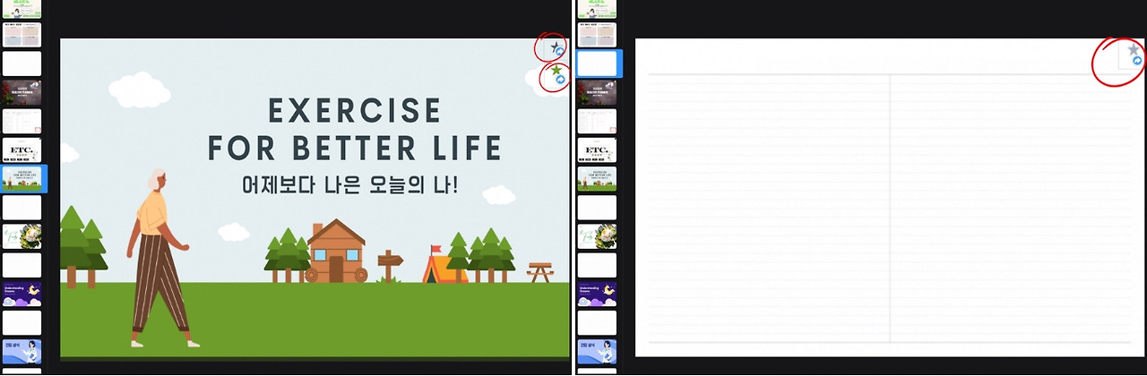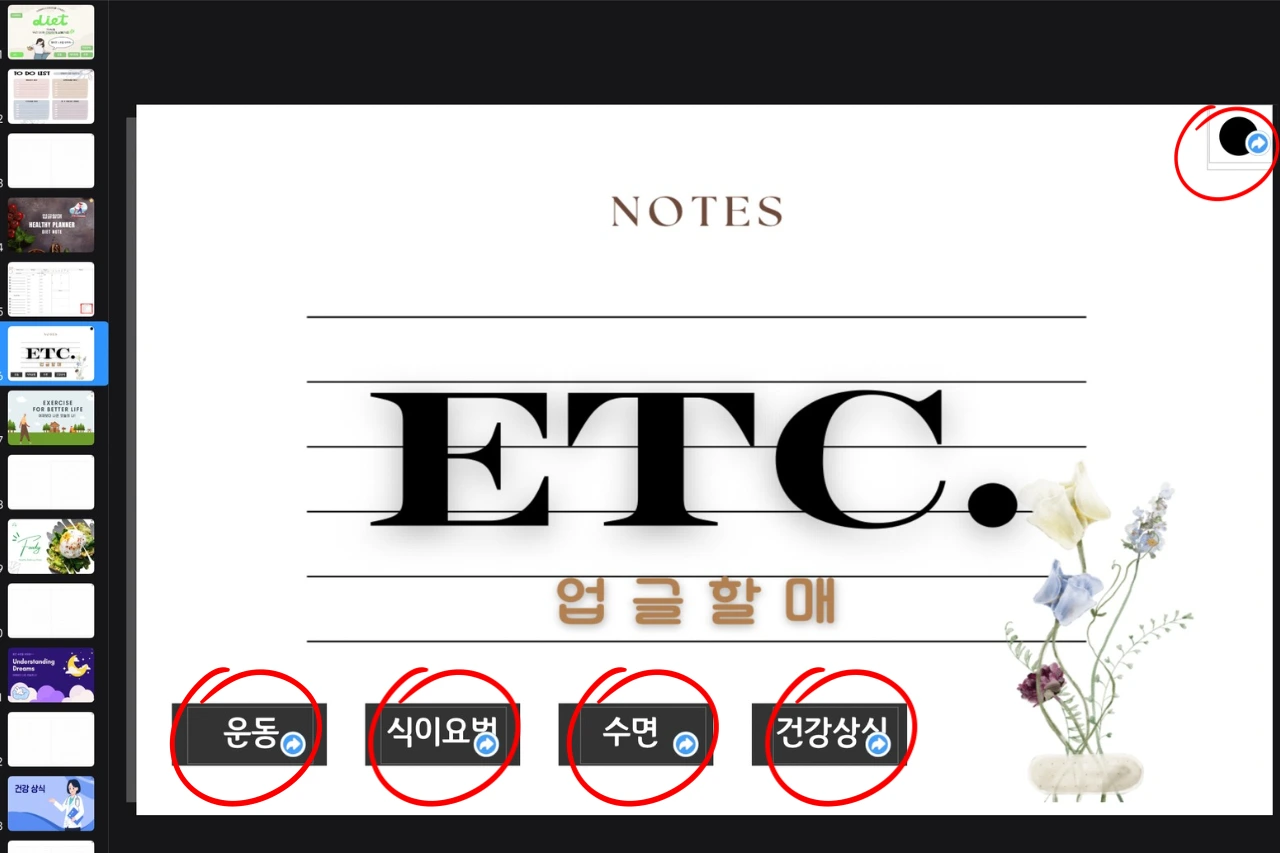 처음 배울 때는 모든 것이 낯설고, 마냥 버겁기만 하던 것이, 이제는 이 어려운 키노트라는 앱을 키고, 내가 원하는 노트 속지도 만들고, 게다가 하이퍼링크라는 제법 어려운 기능까지 달아서, 나만의 멋진 노트가 탄생한 것이다.