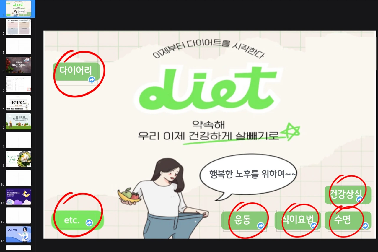 그 자리에서 내가 만든 ’건강 다이어트 노트‘를 있는 대로 자랑을 했다.