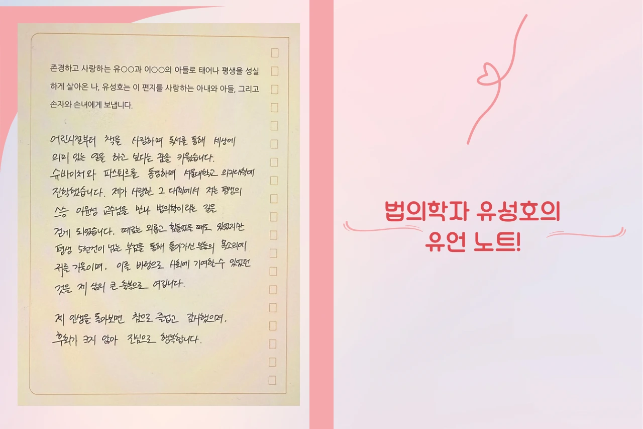 유성호 교수님이 직접 작성하신 유언 노트이다.