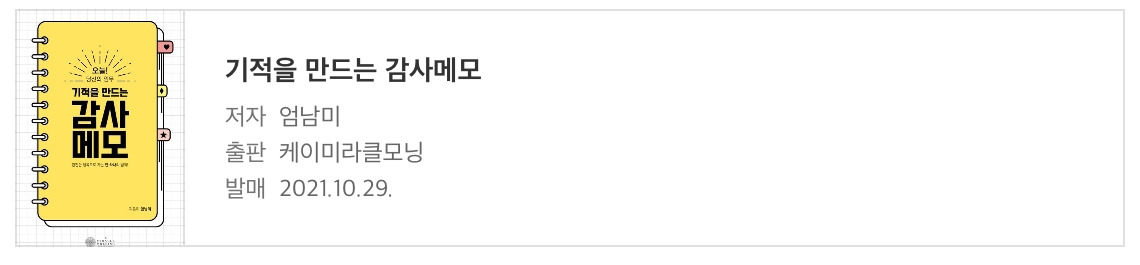얼마 전에 엄남미 작가님의 《기적을 만드는 감사메모》라는 책을 만났다.