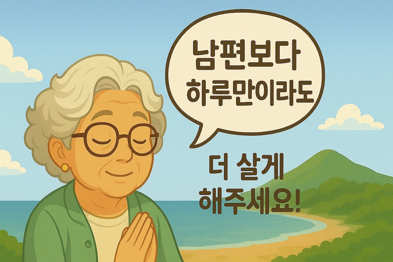 1: 남편을 무사히 먼저 보내고, 그 후에 내가 평안히 뒤따라 갈 수 있게 된 은혜에 미리 감사드립니다.
