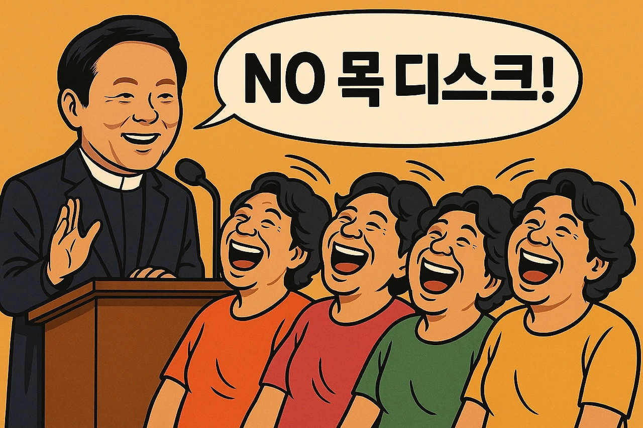 “아니, 여러분이 웃으면서 목을 앞뒤로 죽어라고 흔드는데, 도대체 무슨 수로 목 디스크가 걸리겠습니까?”