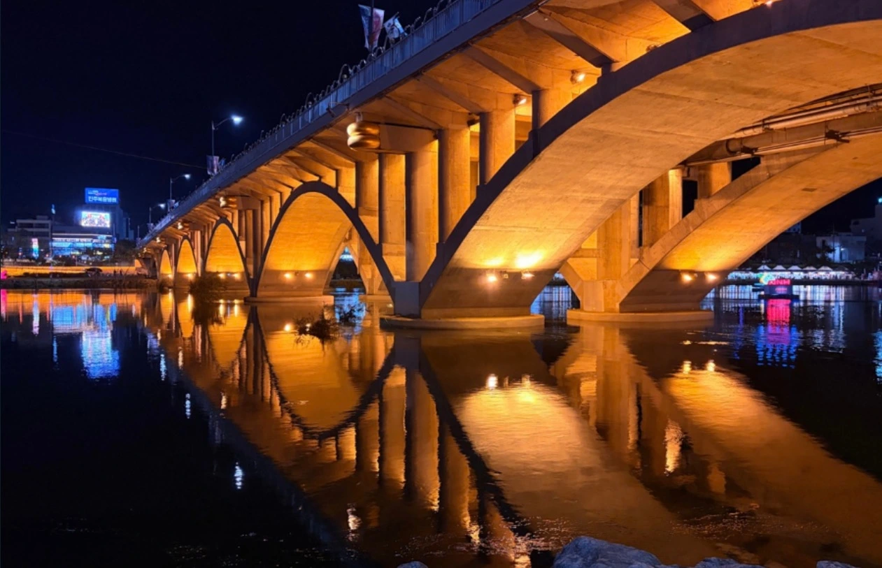 불빛에 물든 남강의 물결이 피아노 선율처럼 흔들리고, 그 빛 속에서 과거와 현재가 장난스럽게 손을 맞잡았다.