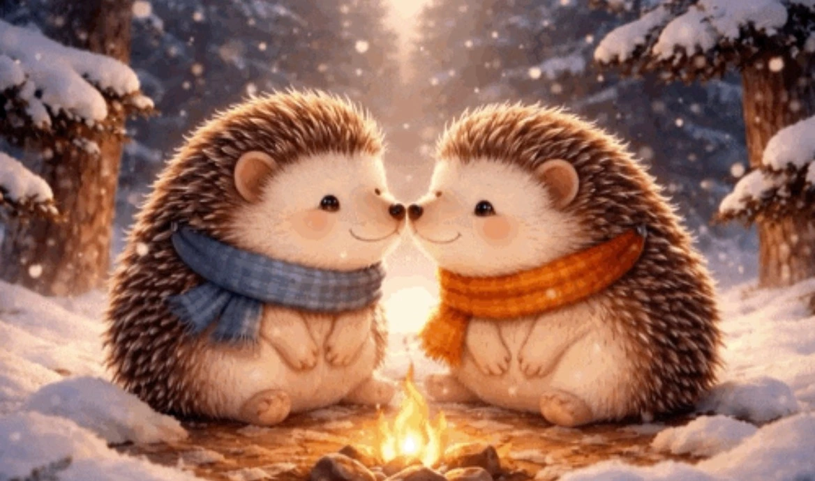 추운 겨울을 견디기 위해 고슴도치들은 서로에게 다가간다.