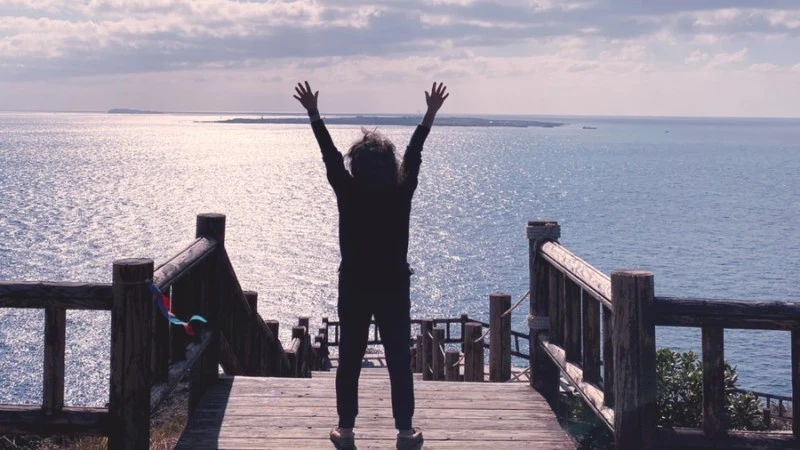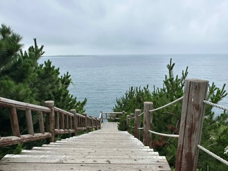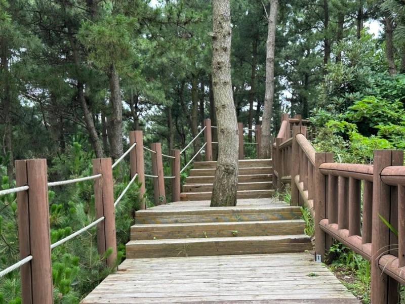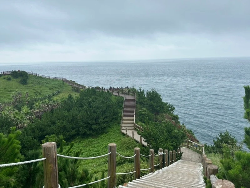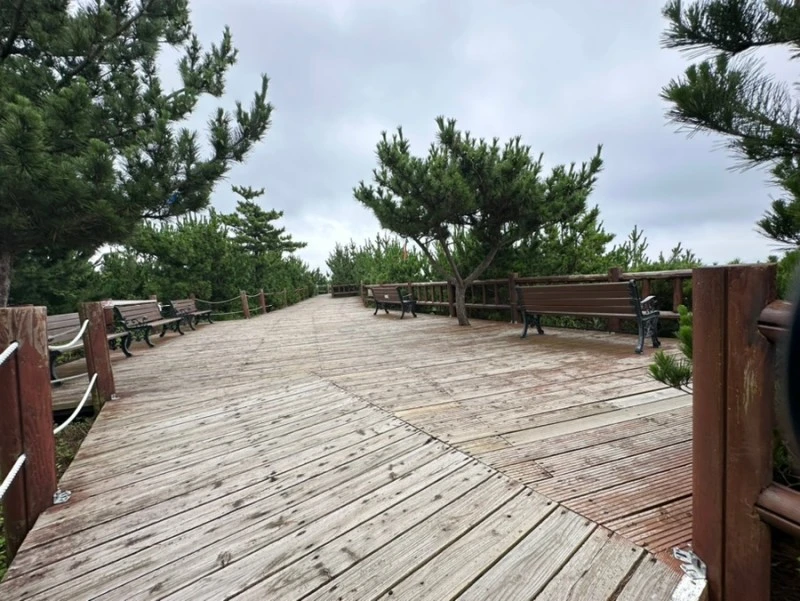 그래도 끝까지 참고 잘 올라오다보면 이렇게 근사한 쉼터가 나온다. 마치 사막에서 오아시스를 만난 기분이 이럴 것 같다. 날씨 좋은 날은 이곳에 앉아서 가파도와 마라도를 바라볼 수가 있는데 오늘은 약간 흐려서 제대로 보이지를 않는다.
