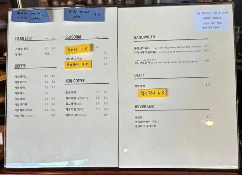 메뉴는 커피랑 음료 샌드위치가 있는데
