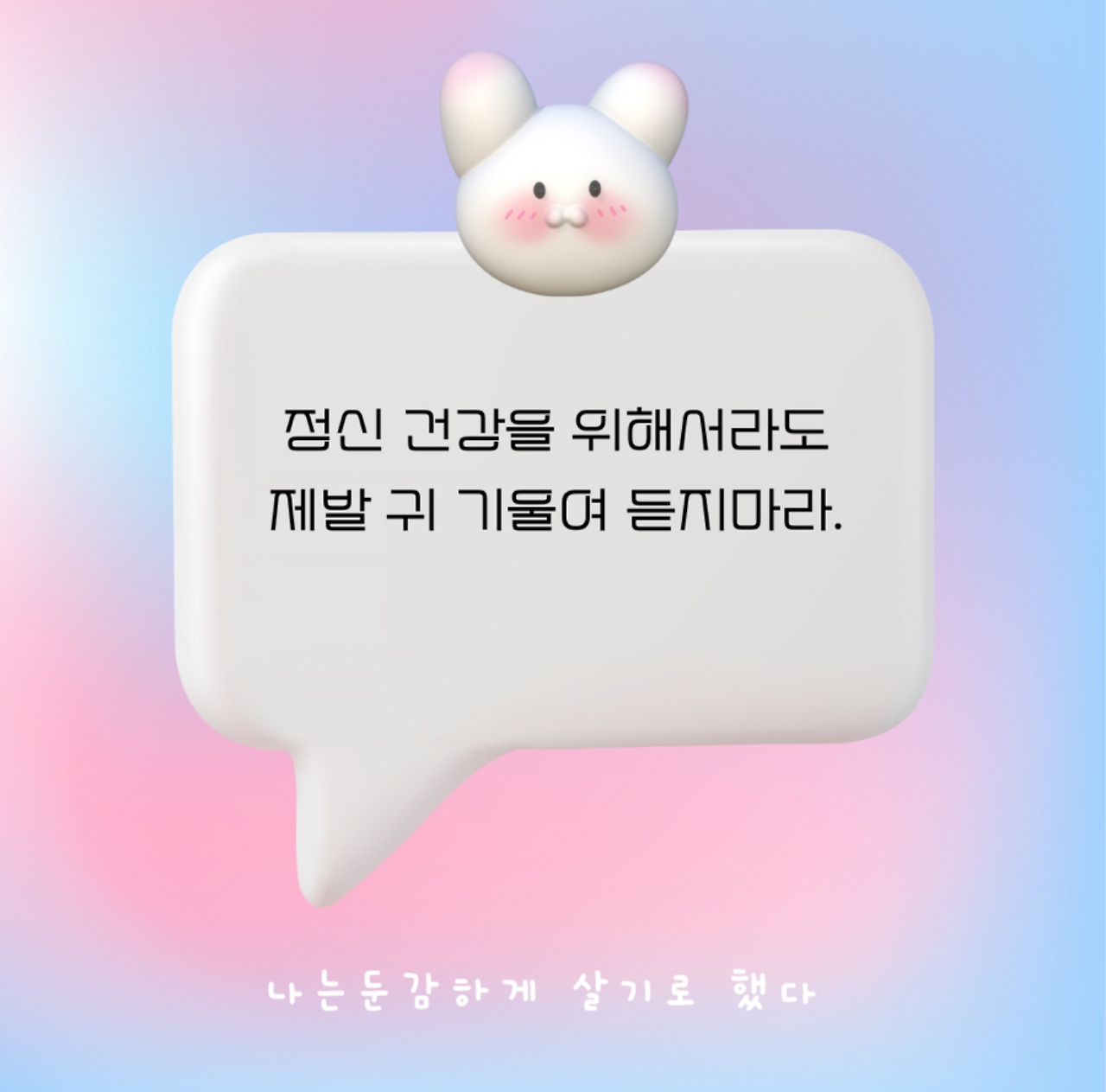 귀 기울여 들을 말, 절대로 귀 기울여서 듣지 말아야 할 말을 잘 가려서 들을 수 있는 현명함도 바로 진정한 “둔감력”인 것 같다.