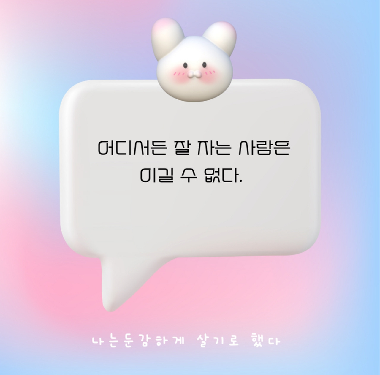 어쨌거나 어디서든 잘 자는 사람은 이길 수 없다는 말처럼 잘 자는 능력은 신이 내려주신 선물이니까 늘 감사하고 살라고 우리 딸한테 자주 이야기를 해준다.