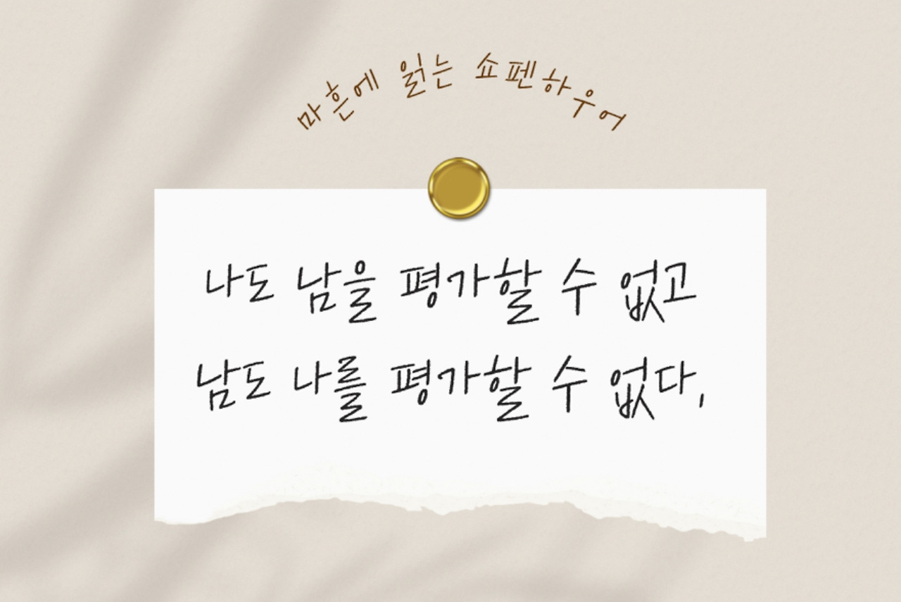 나도 남을 평가할 수 없고, 남도 나를 평가할 수 없다.