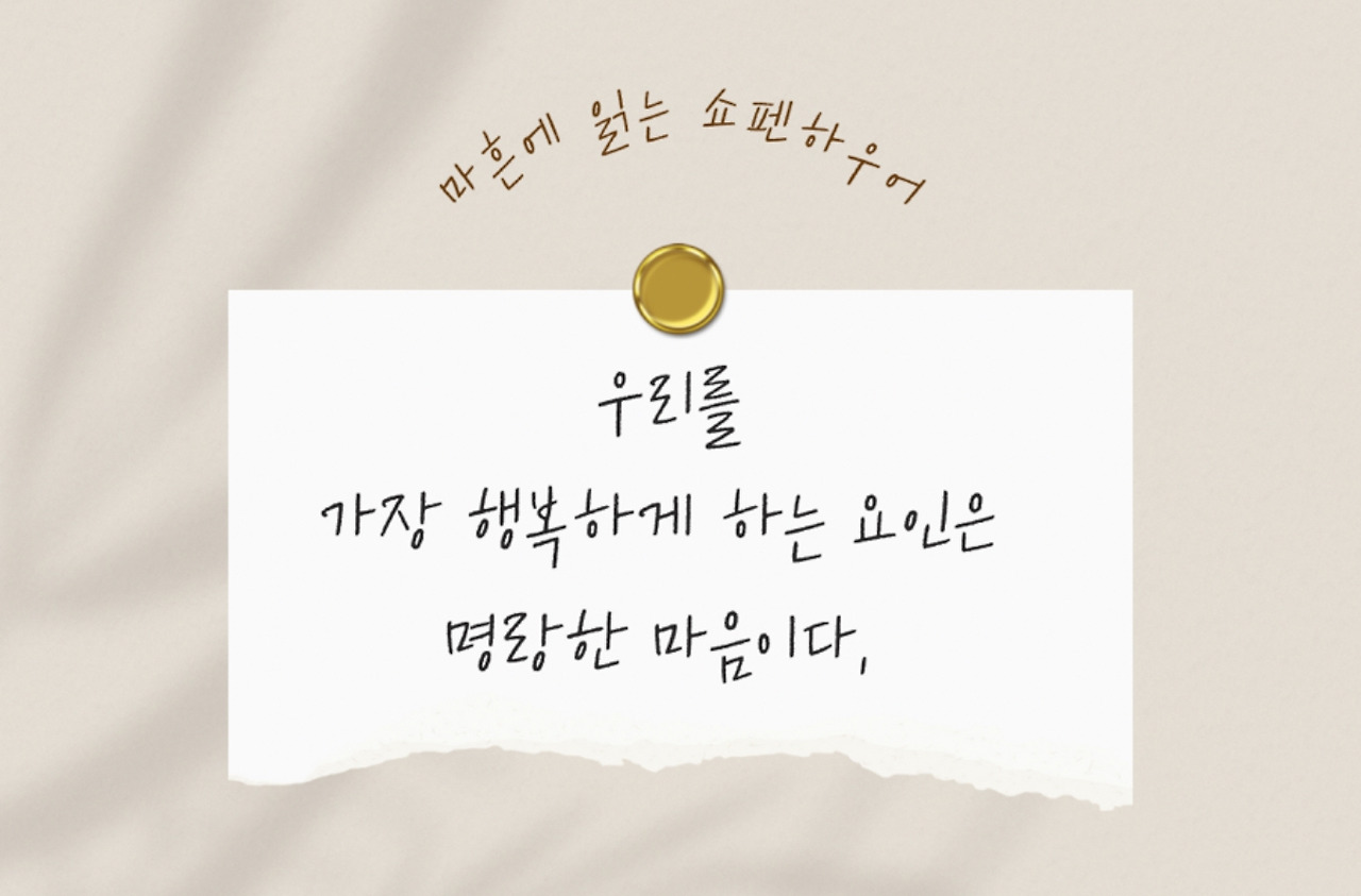 우리를 가장 행복하게 하는 요인은 명랑한 마음이란다. “많이 웃는 자는 행복하고, 많이 우는 자는 불행하다"라는 지극히도 상식적인 것을 우리는 잘 못하고 있다. 웃으면 복이 온다고 그렇게 오랫동안 귀가 닳도록 듣고 살았으면서도 왜 사람들은 점점 더 웃음을 잃어가는지 마음이 너무도 안 좋다.