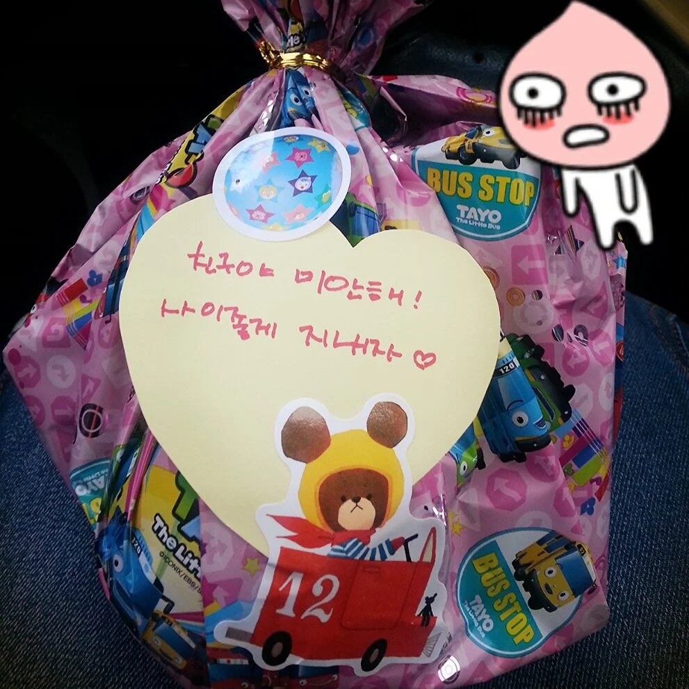 어제 둘째를 물었던 아이의 엄마가 선물꾸러미를 보냈다.