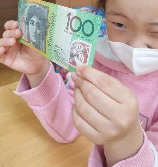 세계 여러 나라의 지폐들은 크기와 모양이 제각각, 지폐에 그려진 인물들도 다양해서 아이들이 신기해하죠. 특히 호주의 돈은 투명창이 있어서 더 좋아합니다.