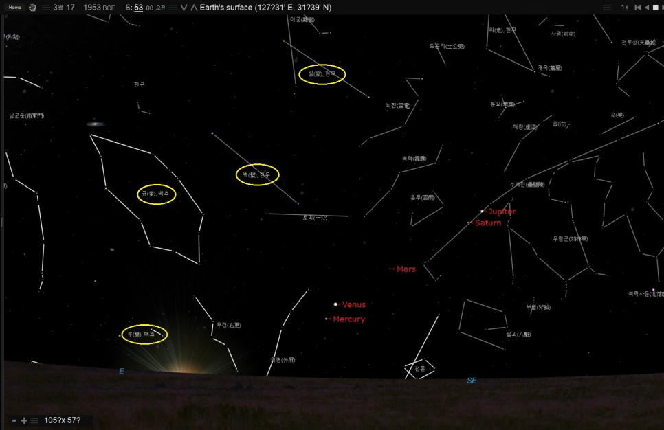 기원전 1953년 3월 17일의 동쪽 하늘 모습