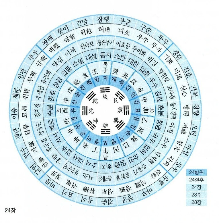 문자 그대로 해석하면 삼황오제 중 한 명인 전제, 즉 전욱 고양 씨가 다스리던 시기에 일월 오성이 모여 이것을 역법의 근원으로 삼았다고 읽을 수 있다. 여기서 중요한 건 해와 달과 오성이 모인 곳이 자(子) 방이라는 것이다. 아래 방위표를 보자.