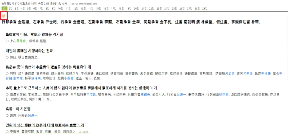 - 숙종실록 숙종 23년 윤 3월 1일 1번째 기사