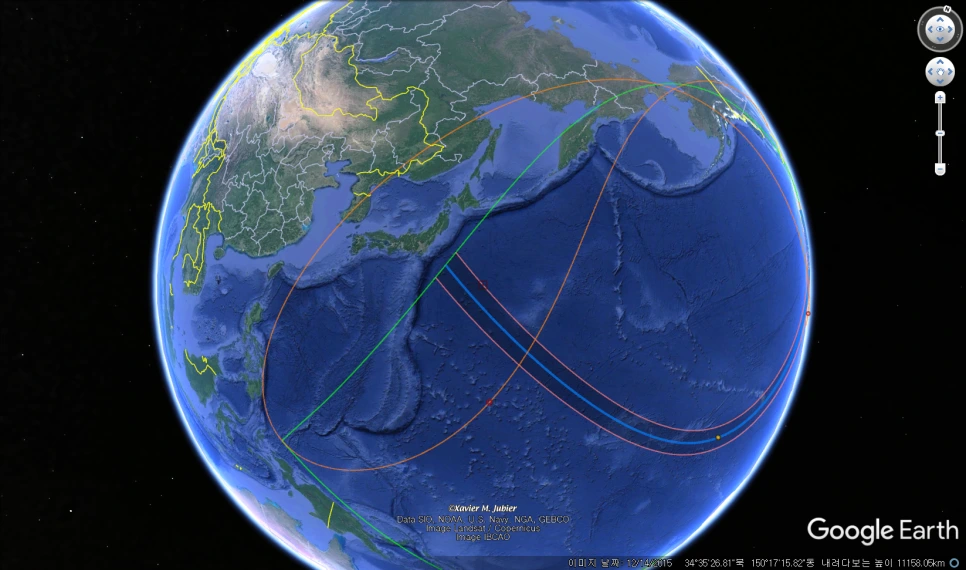 해당 일식의 달의 그림자가 지나간 궤적은 아래와 같다.
