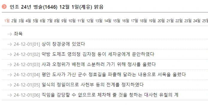 - 인조실록 인조 24년 12월 1일 기사