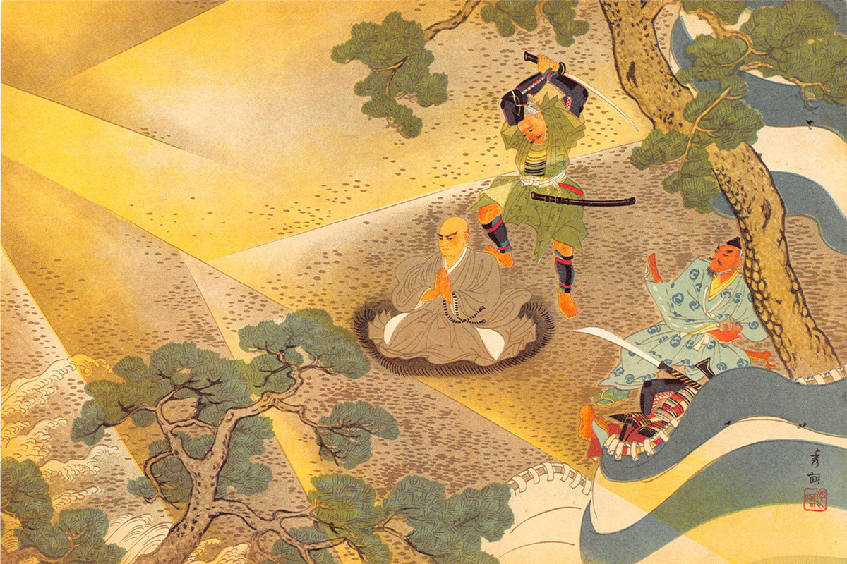 일본 승려 니치렌이 처형당하기 직전 신성이 나타난 장면