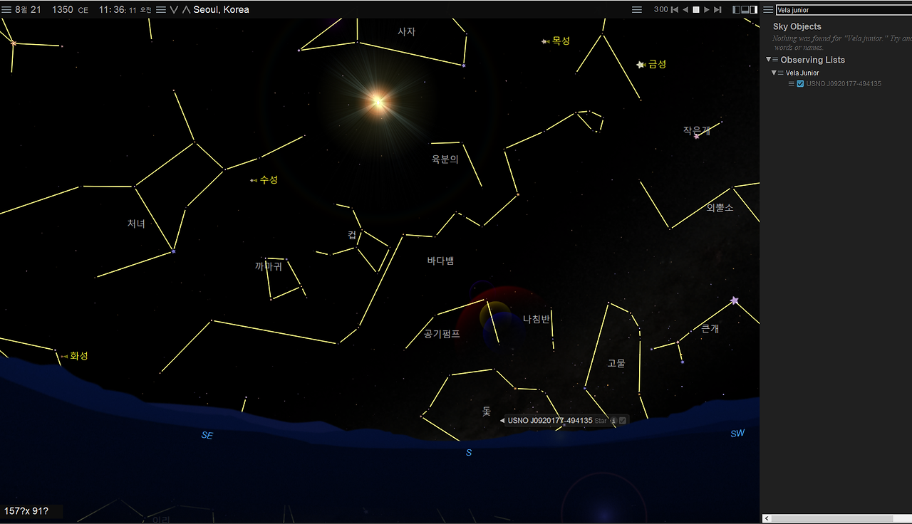 그렇다면 이 때 Vela Junior 가 있는 돛자리는 언제 하늘에 떠 있었을까.