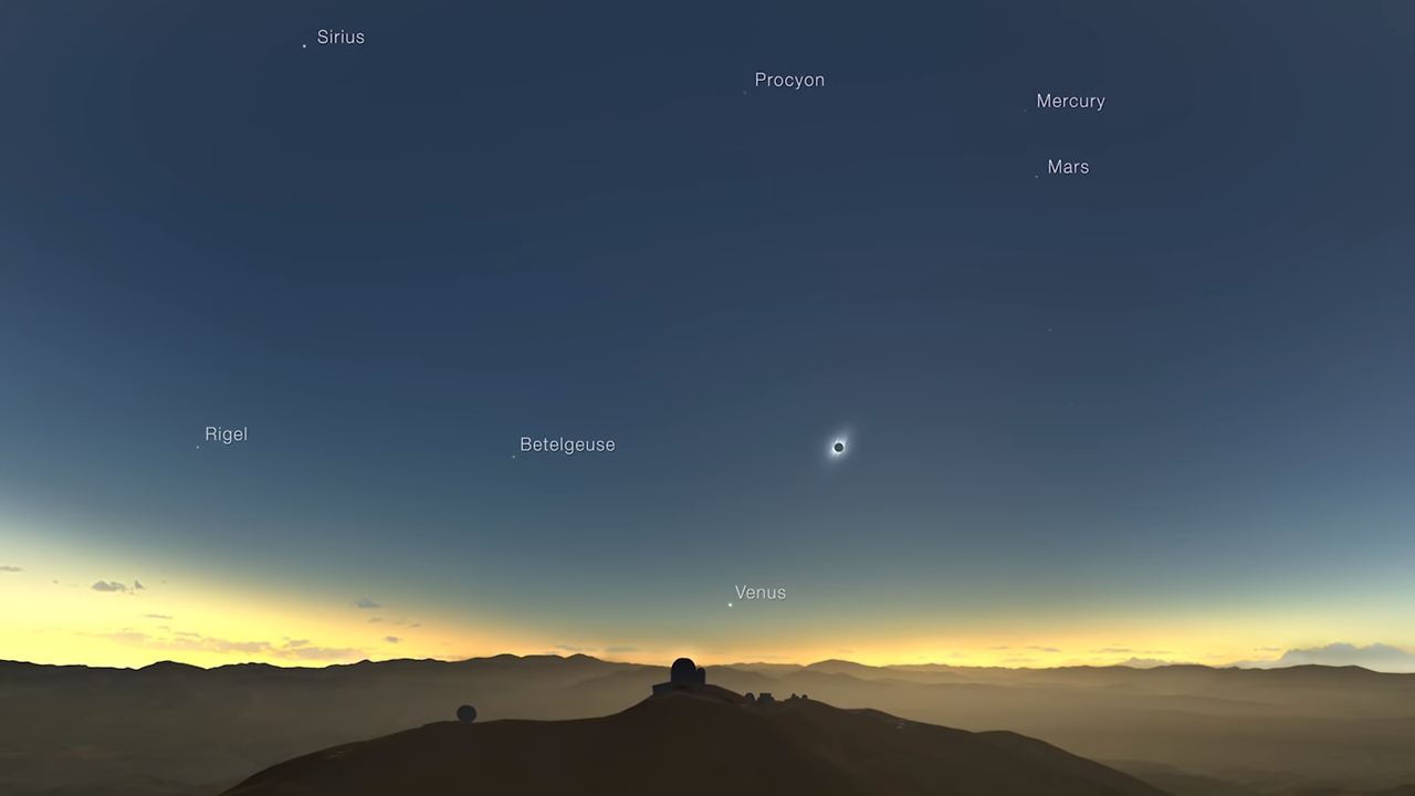 2019년 라실라산 천문대에서 관측된 개기일식의 모습