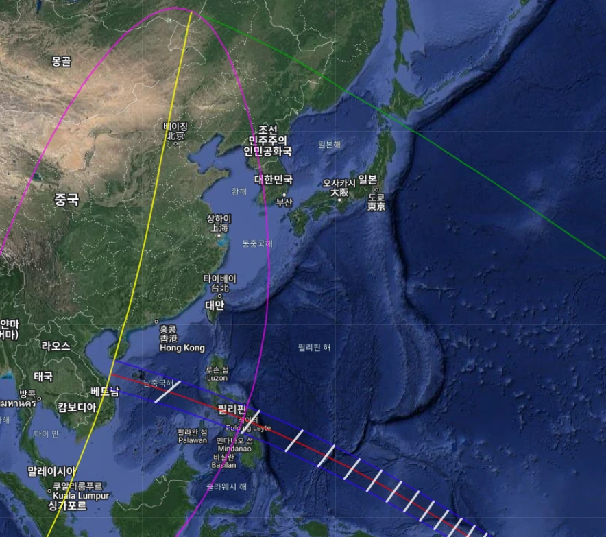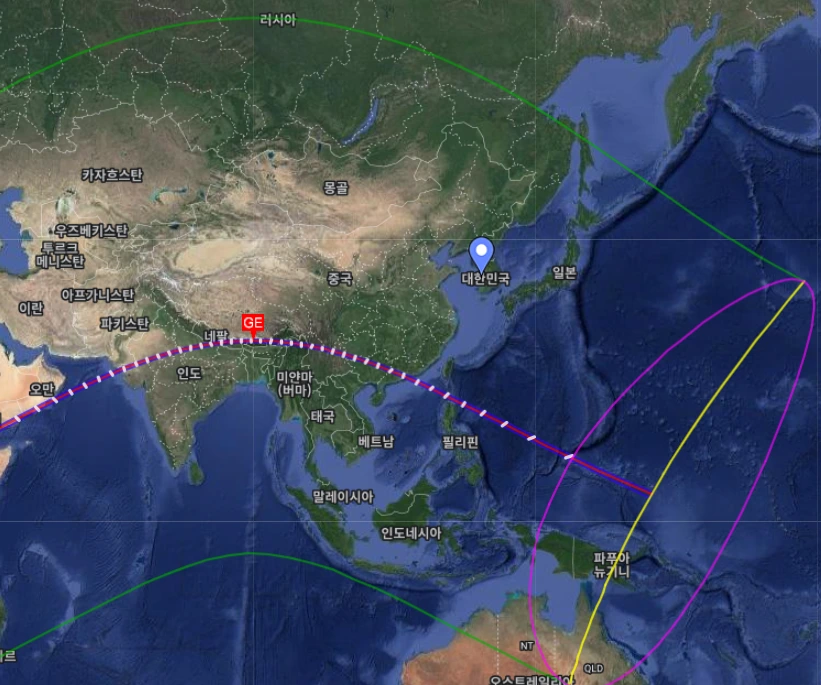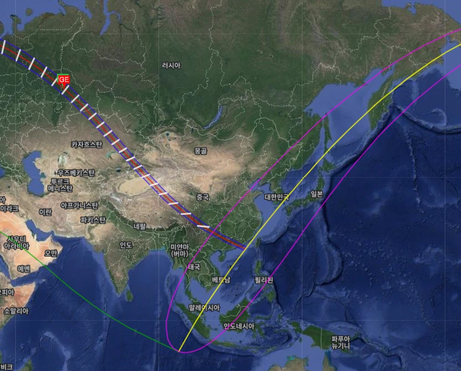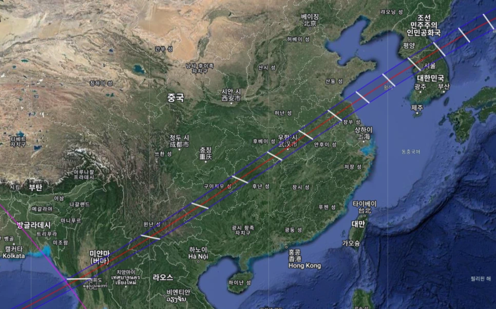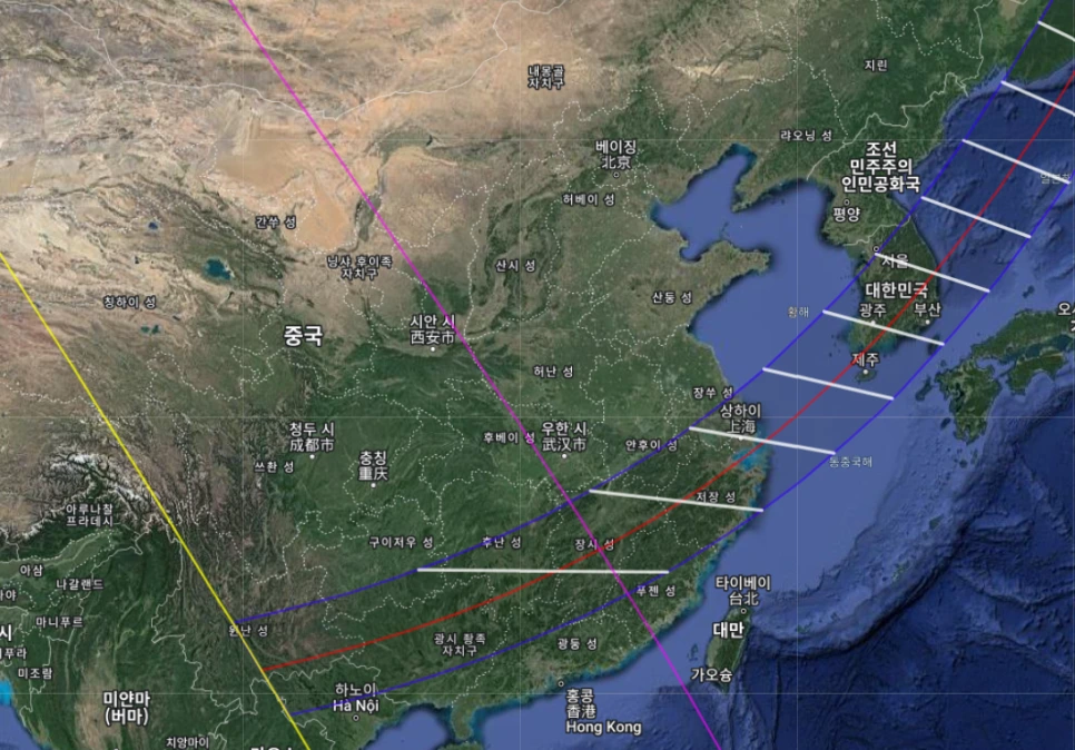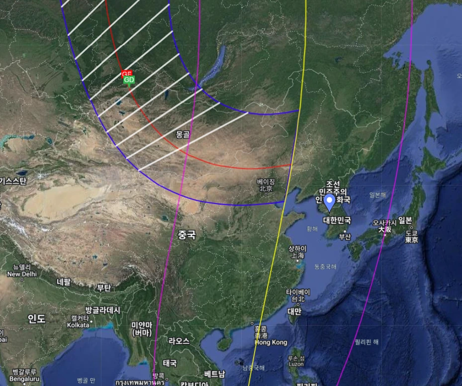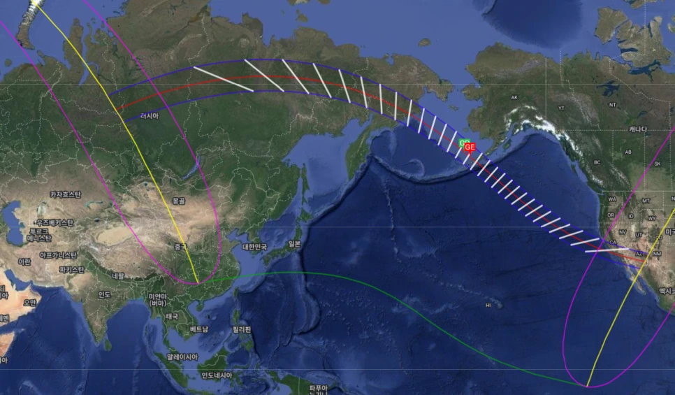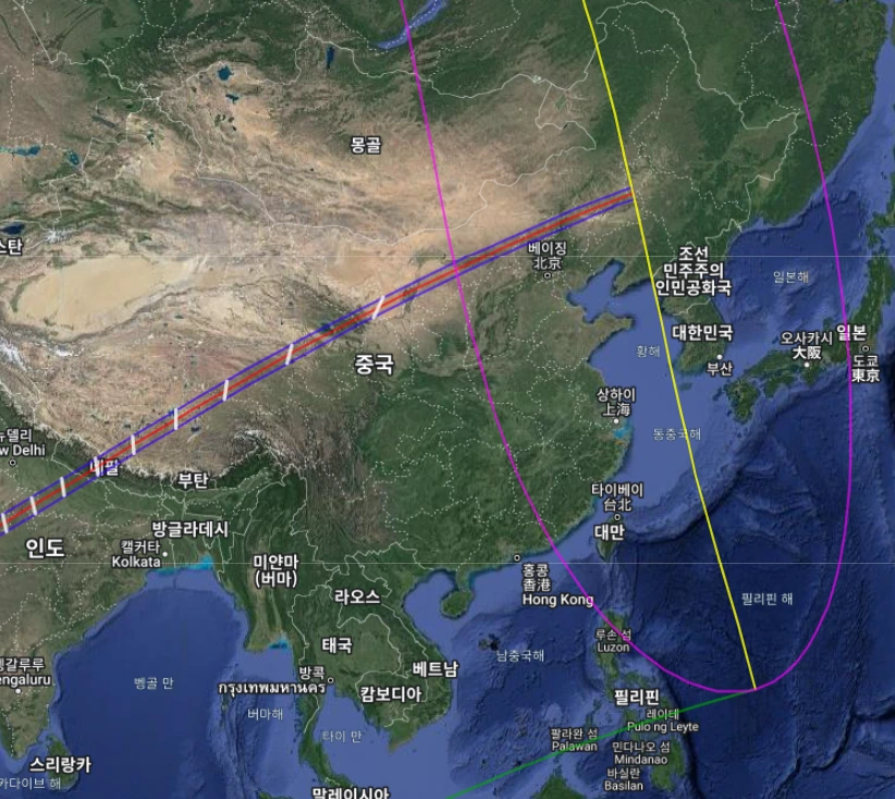 이 날의 달의 본그림자는 러시아 북부 쪽이다.