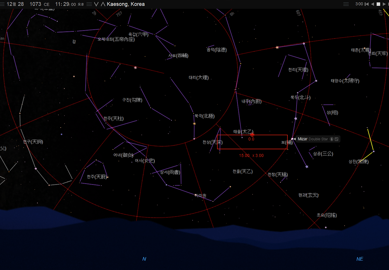 문천(문창, 미자르) 서쪽 (1073년 음력 11월 27일)