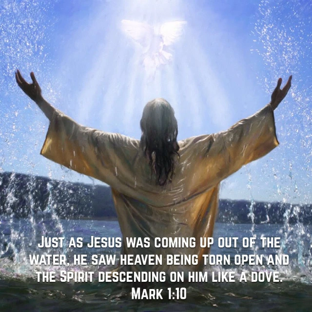 'Just as Jesus was coming up out of the water, he saw heaven being torn open and the Spirit descending on him like a dove' - MARK 1:10