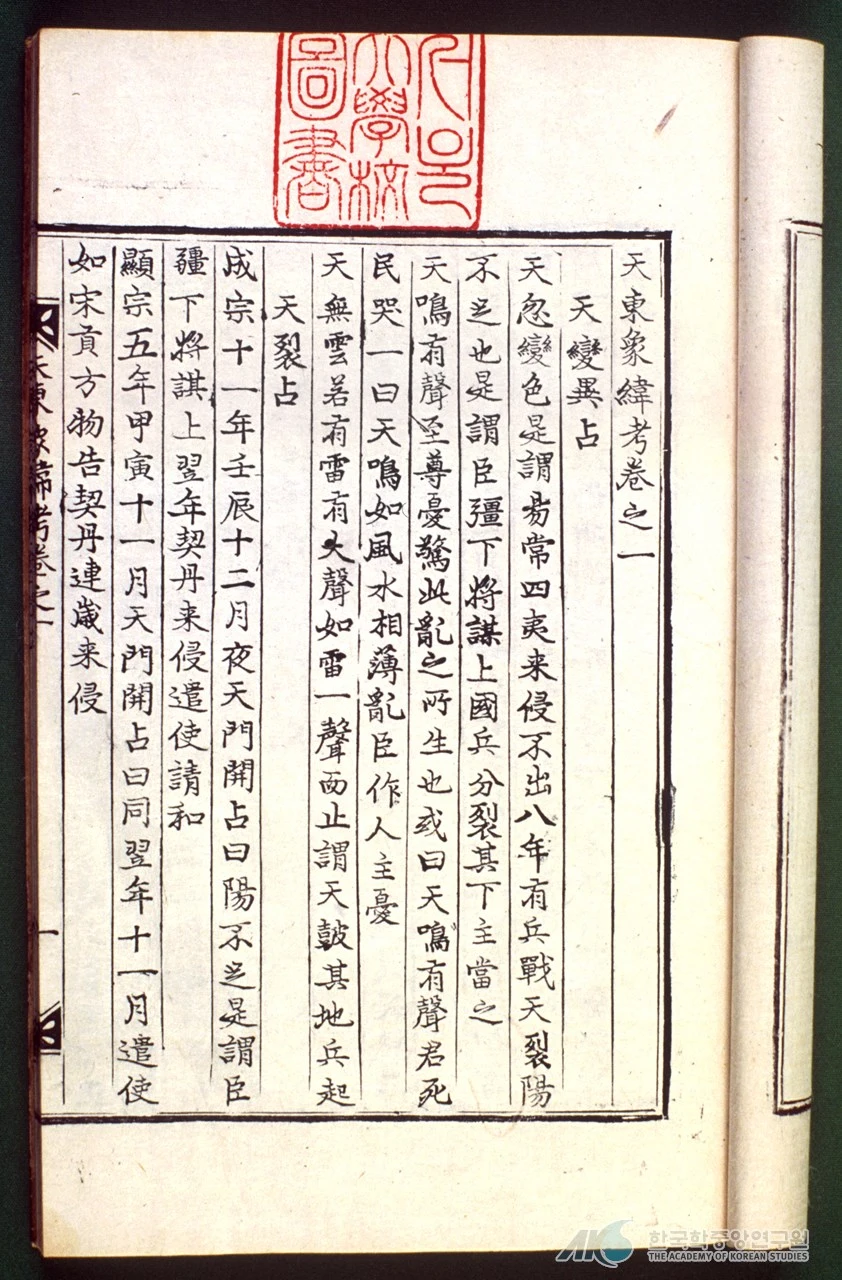 그런데 권 1의 하늘의 변이, 즉 천변이점(天變異占) 편의 첫 장의 서(序)를 보면 우리가 잘 이해할 수 없는 천변에 대한 해석이 나와 있는데 바로 천렬(天裂), 즉 하늘의 갈라짐 또는 찢어짐이라는 현상이다.