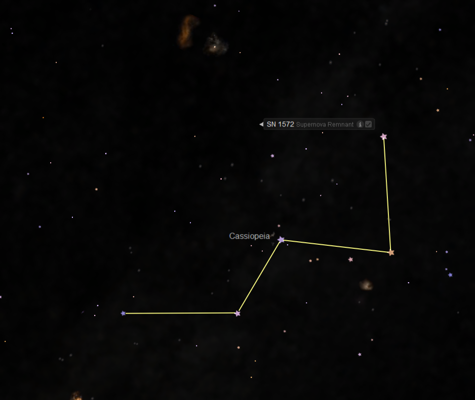 그림의 화살표로 표시된 별 모양들은 SN 1572 외 존재라는 초신성 잔해들이다. 그러나 이들 중 1598년 근처에 폭발했을 것으로 추정되는 잔해는 존재하지 않는다. 객성의 기록은 존재하지만 초신성 잔해는 존재하지 않는 것은 과연 어떤 종류의 별이었을까.