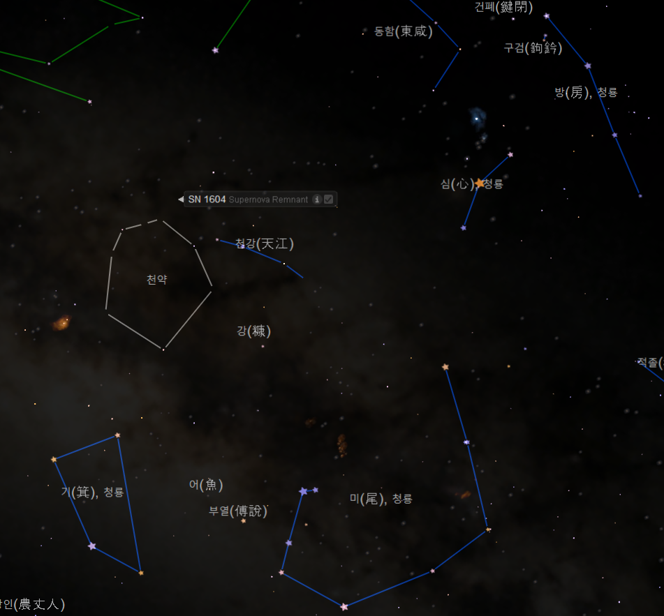 어쨌든 SN1572는 '북쪽 대장별'이라 하기에는 시기가 맞지 않다. 그리고 초신성이 폭발했다면 현재 그 초신성의 잔해가 보여야만 하는 데 임진왜란이 일어나 1592년과 1598년 사이에 터져서 남은 초신성 잔해, 즉 SN1592나 1598은 존재하지 않는다. 시간이 지나 선조실록에는 선조 37년인 1604년 음력 9월부터 이듬해인 1605년 3월까지 지금의 전갈자리인 미(尾)수 별자리 부근에 객성이 나타났다는 기록이 존재한다. 이 기록 같은 경우 현재 SN1604로 명명된 초신성 잔해가 남아 있다. 특히 실록에는 미수 별자리 수거성으로부터 동쪽으로 11도, 거극도(북극성으로부터 떨어진 고도) 109도로 정확히 좌표까지 기록하여 의심할 여지가 없다.
