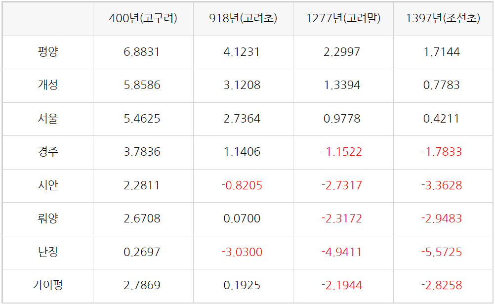 각 시대별 파군성의 북중고도