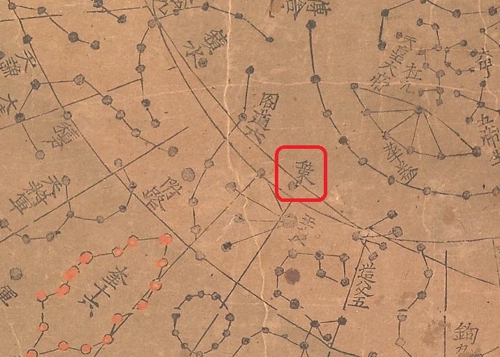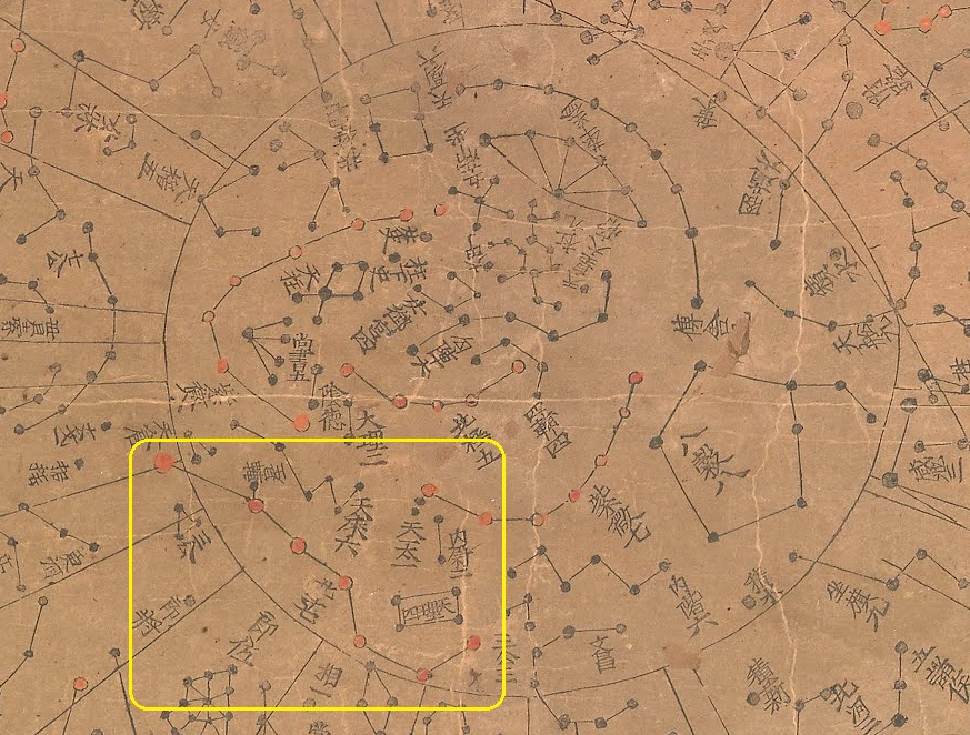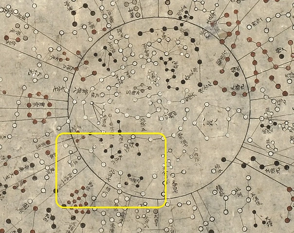 이 중 가운데 별인 카시오페이아 감마 별, '책' 별자리에 주목하자. 천상열차분야지도에는 책 별자리가 아래와 같이 주극원 안에 위치해 있다.