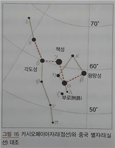 주극원 안에 그려진 책(카시오페이아 감마) 위치