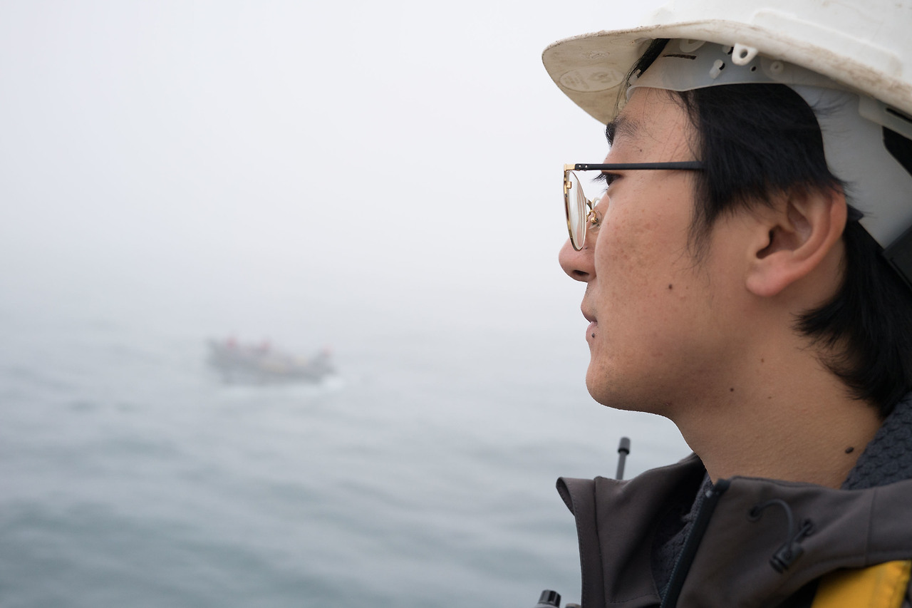 "이제부터가 진짜 긴장해야 할 때야. 아마 해양경찰배가 오고 있는 거 같네."