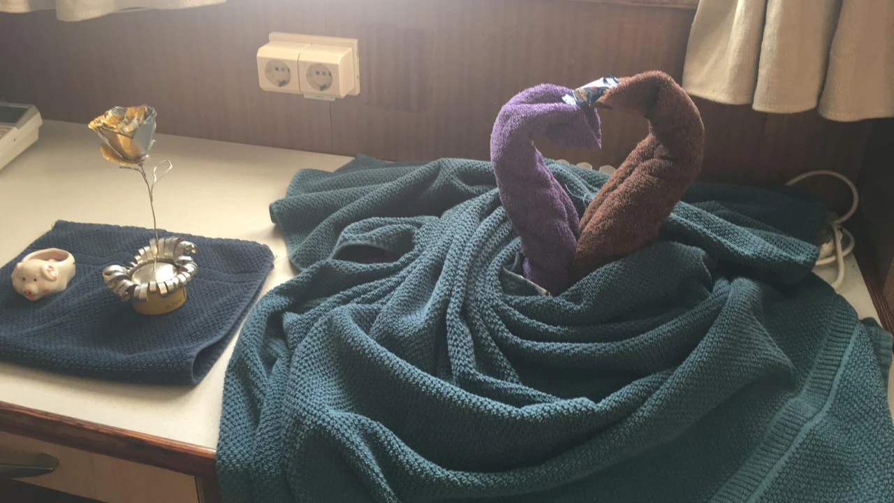 방에 전시된 감동적인 룸 서비스 누군가가 수건으로 백조를 만들어 놓았다. 꽤 오래 걸린 출근길을 마치고 나서, 호텔에 들어온 기분이기도 하였다. 그 수건을 쓰기가 아까웠던 나는, 수건은 그 자리에 놔두고 새로운 수건을 꺼내어 샤워를 하였다.