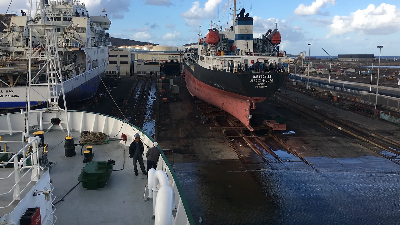 하루가 멀다하고, 검버섯처럼 올라오는 녹 그렇게 기나긴 수리기간의 마지막으로, 배를 물 밖으로 빼내어 선박의 외판을 위한 작업을 하기로 하였다. 이 작업이 끝난 후, 앞으로 5년 동안 선박을 더 운항할 수 있을지 없을지 결정하는 '선급'에게 검사를 받기로 예정되어 있었다.