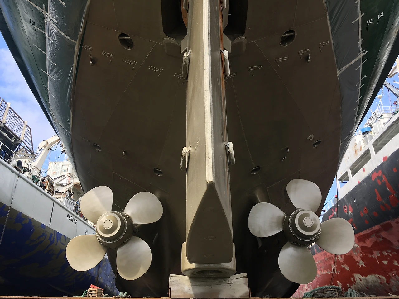 물속에서는 할 수 없는 선박의 외판을, 특히 더 신경 써서 녹을 제거하고 그 위에 페인트 칠을 하였다.