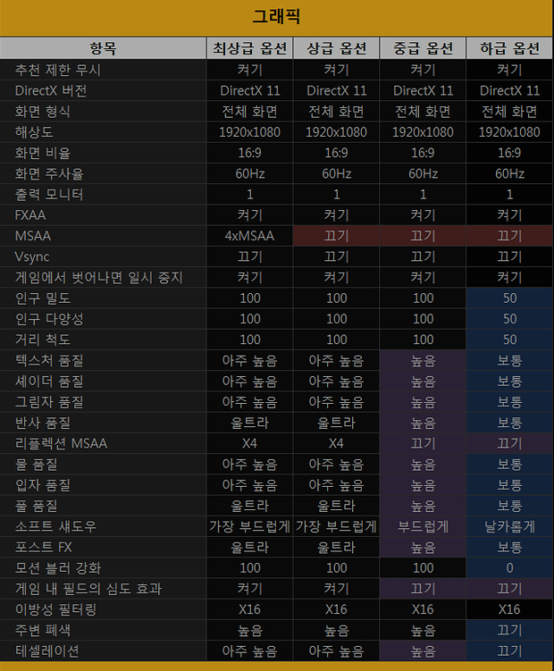 컴퓨터 그래픽에 대해 잘 모른다면 자동설정을 해도 괜찮다 :D