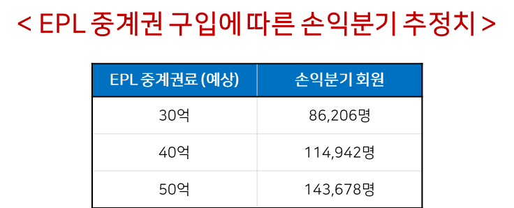 EPL, MLB, NBA 중계권료 : 연간 50~100억