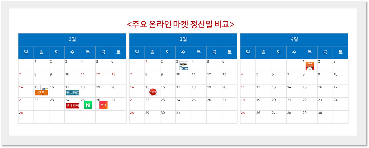 쿠팡, 티몬, 위메프의 정산일은 좀 독특합니다.