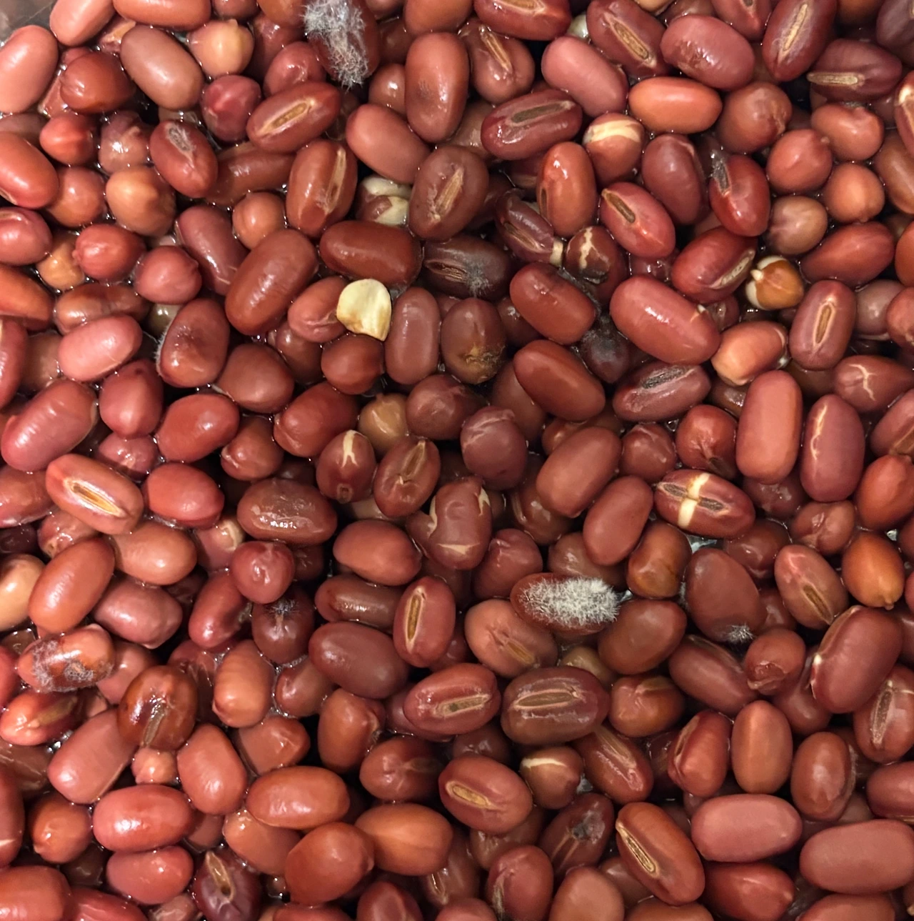 불려 놓은 팥에 곰팡이가 생긴 것이다.