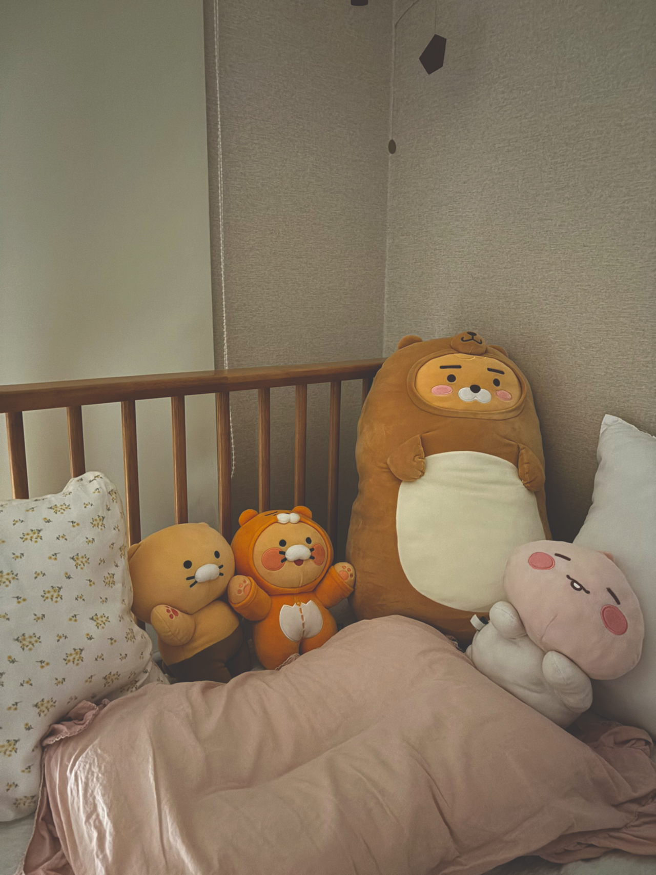 그다음은 다리 뒤를 늘려줄 차례이다. 서 있는 상태에서 허리를 굽혀서 몸을 반으로 접는다. 이 동작의 핵심은 단순히 몸을 반으로 접는 것이 아니라 '배와 허벅지가 가까워지도록 한다'는 것이다. 처음에는 쉽지 않은 것이 당연하다. 하지만 '배와 허벅지의 만남'에 집중하며 매일매일 하다 보면 이 둘이 조금 친해져 있음을 느낄 것이다. 반으로 접혀서 천천히 숨을 들이쉬고 내쉰다. 다리 뒤가 펴지면서 다리 근육이 숨을 쉬는 것처럼 느껴진다. 어느 정도 마음이 가다듬어지면 천천히 허리를 둥그렇게 말며 올라온다. 이제 드디어 푹신한 침대에 올라갈 때가 왔다. 귀여운 인형들이 옹기종기 모여있는, 나의 색으로 칠해진 아늑한 공간으로. 내가 참 좋아하는 순간이다.하지만 요가는 끝이 아니다.
