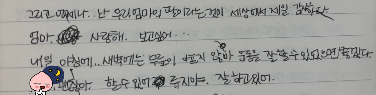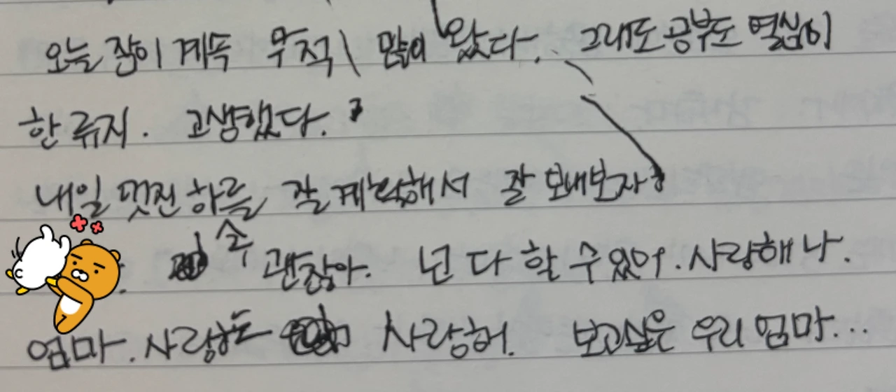 사실, 약 일 년 전까지만 해도 일기를 쓰는 것이 매일 잠들기 전 마지막 일과였지만, 지금의 나는 자기 전보다는 매일 아침 눈을 뜨자마자 일기를 쓴다. 그 이유는 밤에 일기를 쓰면 너무 졸려서 그만 일기는 제대로 쓰지 못하기 때문이다. 즉, 잠에 드는 데에는 직방이라는 증거이다. 그 시절 나의 일기를 다시 보면 '휴먼 졸림체'의 정석을 볼 수 있다. 그렇게 웃길 수가 없다! 조금은 부끄럽지만 멋드러진 휴먼 졸림체가 아주 재미난 나의 2022년도 일기 중 일부를 남겨본다.