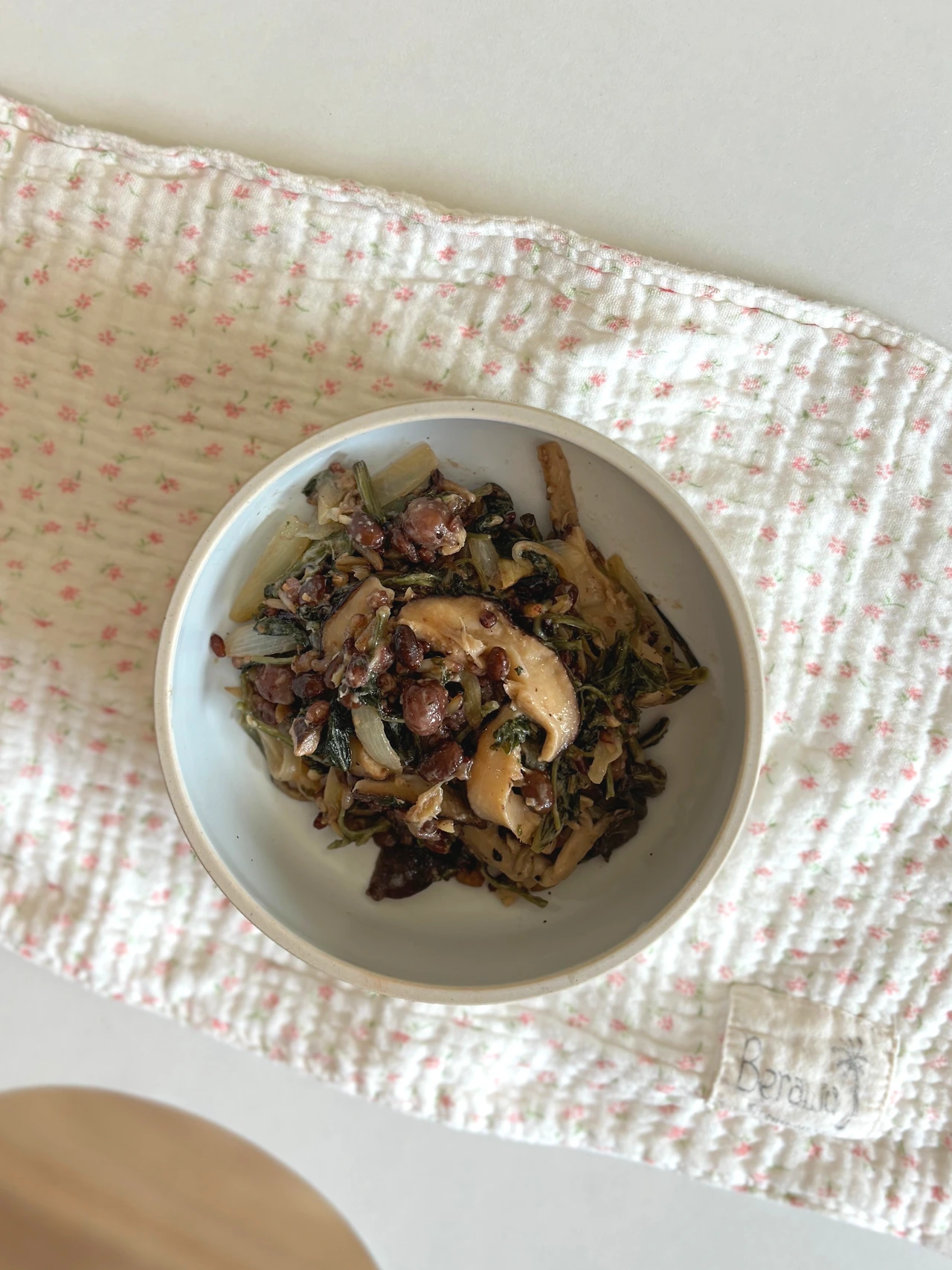 다음날, 오늘은 기필코 맛있는 고사리 요리를 해 먹겠다는 마음으로 새벽에 일어나자마자 고사리를 물에 담가 놓았다. 약 5시간이 지났을까, 나의 고사리는 마침내 통통하고 유연해졌다. 하지만 잡채를 다시 하고 싶지는 않아서 새송이 버섯, 양파 그리고 고사리만을 달달 볶았다. 간은 잡채와 동일하게 간장 반 스푼과 마지막에 뿌려준 들기름으로 끝. 어제와 달리 자신의 줄기를 나의 손에 완전히 맡기는 고사리를 달달 볶으며, 그리고 그 향긋함을 맡으며, 먹기도 전에 나는 직감했다. 아, 오늘은 대성공이다.
