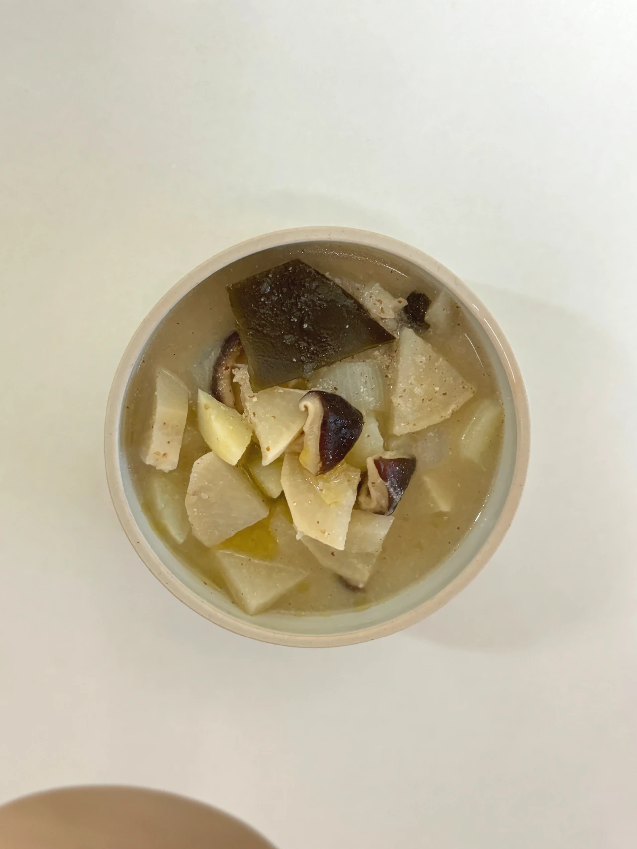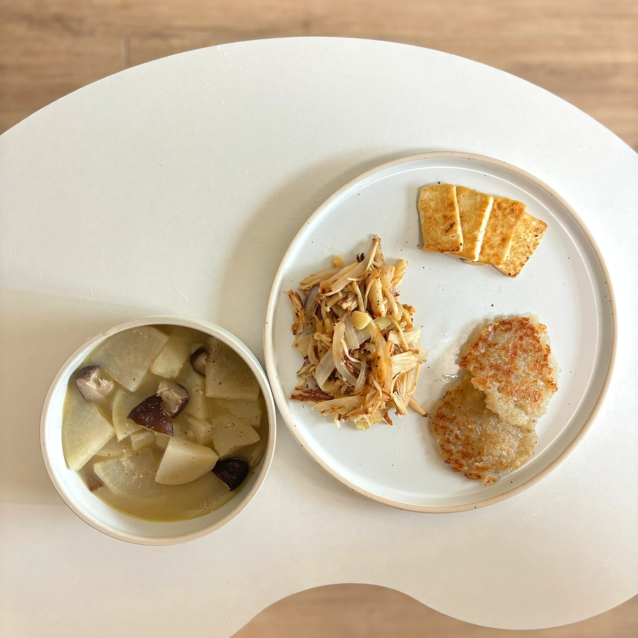 상경 후 3년 가까이를 혼자 살면서 국을 끓인 것은 손에 꼽을 정도이기에, 오랜만에 맛보는 뜨끈한 국물이 무척이나 반가웠다. 부드럽게 넘어가는 무와 감자, 그리고 감칠맛을 한껏 불어넣어 주는 표고버섯까지. 이 세 가지를 한 숟가락에 담아 한입에 넣을 때, 마치 부자가 된 것 같았다. 입 안이 따스한 것들로 가득 차는 그 풍족함을 만끽하고파서 일부러 크게 듬성듬성 잘랐다. 더불어 은은한 들깨의 고소함이 이 야채들의 향을 더욱 아름답게 빛내주었다. 사찰음식을 배울 수 있게 되어 참 다행이다.