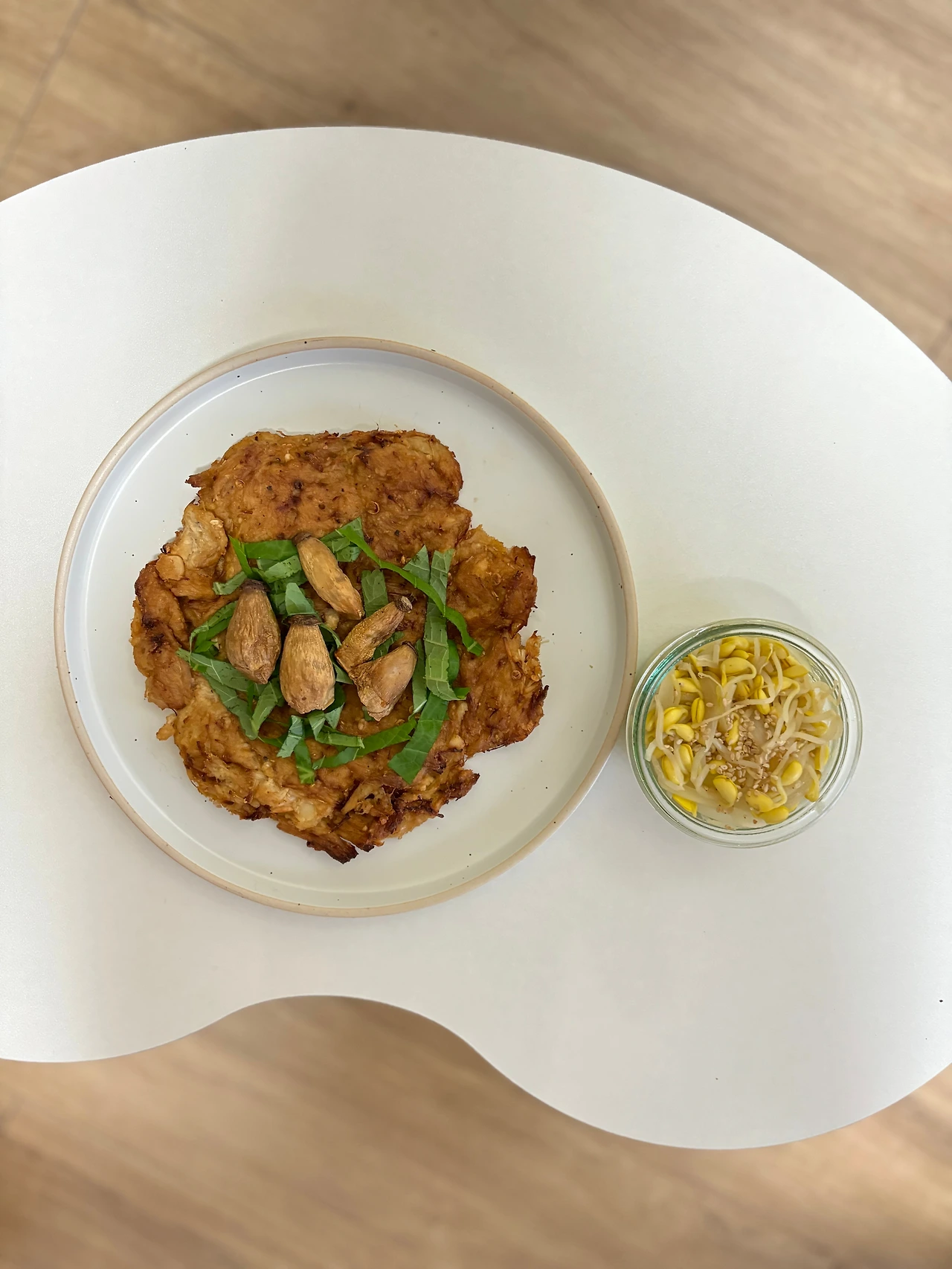 무 감자 부침개와 팽이버섯 전