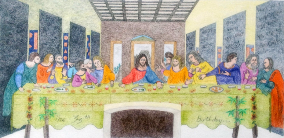 시간이 흐른 후에 다시 한번 최후의 만찬을 그렸다. 아래 그림이 "2. 최후의 만찬" 이다. 이 그림 역시 어딘가 어색하다. 사람을 그리는 게 쉽지 않다.