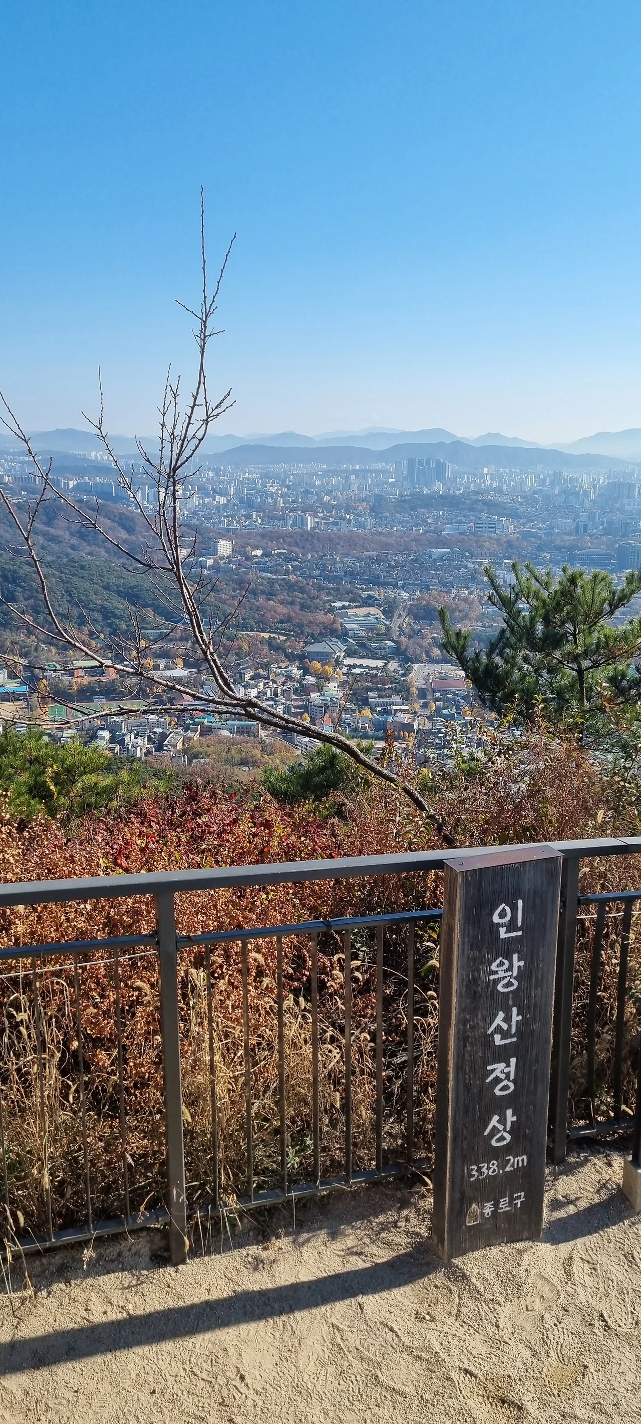 인왕산 정상이 338.2m로 그다지 높지 않지만 성곽둘레길을 따라 걷는 가족동반자, 외국인, 청춘남녀속에 묻혀 서울전경을 둘러보고 북악산 밑에 자리한 청와대도 내려다본다.