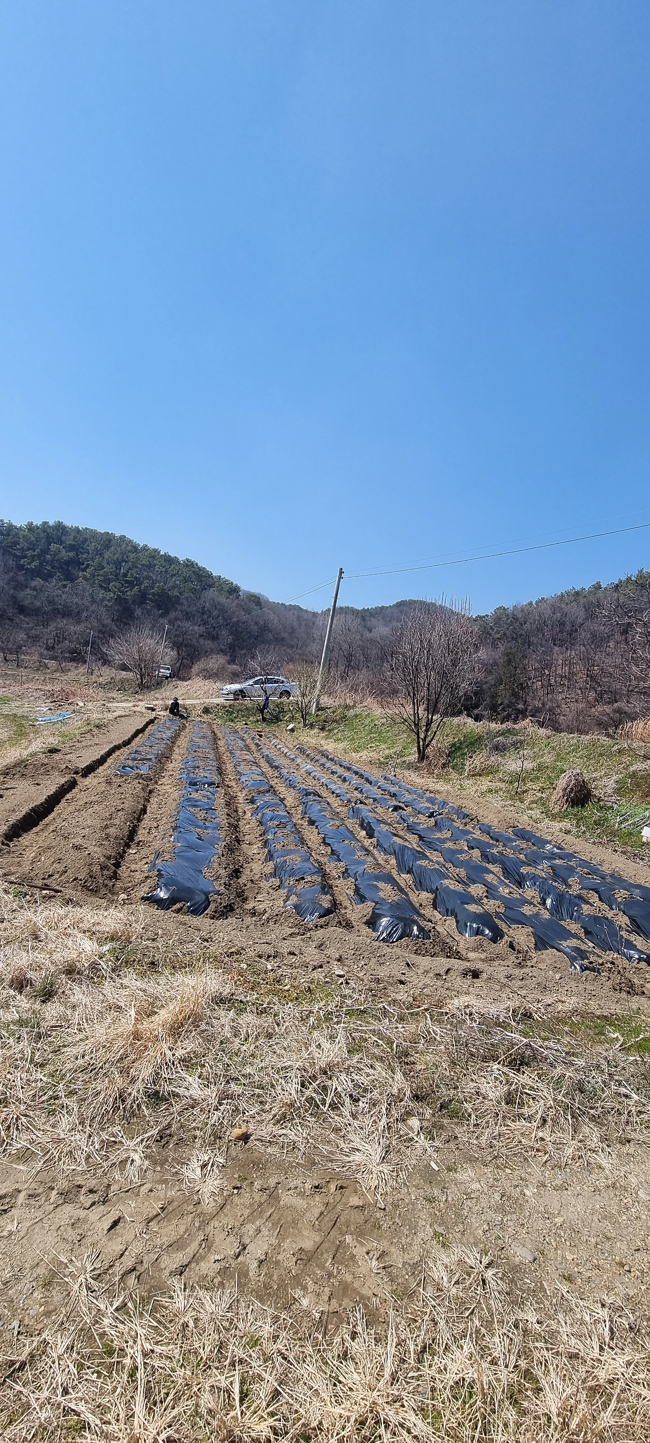 동네 아저씨에게 밭을 갈고 이랑을 만들어 달라 부탁했었는데 이미 잘해놓았다, 이제 검정 비닐을 씌울 생각을 하니 하루는 족히 걸릴 듯했다. 그런데 감자농사를 크게 짓는 친구가 근체에서 외국인 노동자들을 데려와 감자를 심고 있었는데 그중 둘을 보내주었다.