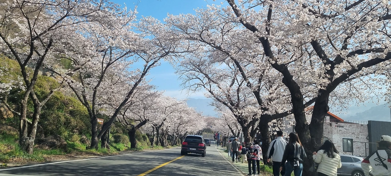 길 양옆으로 벚꽃이 흐드러지게 피어 있었다. 마치 누군가 하룻밤 사이 세상 위에 연분홍 물감을 풀어놓은 듯했다. 이미 벚꽃 구경을 온 차량들은 길게 줄을 이루고, 사람들의 발걸음은 봄물처럼 넘실거려 내 마음도 들떴다.
